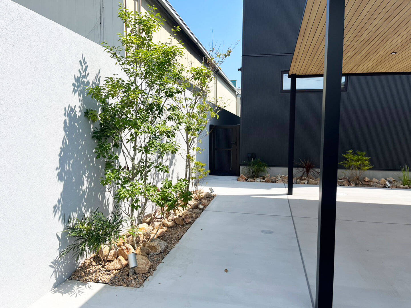 スタイリッシュな白のグランドアートウォールと直線・余白・素材感にもこだわった外構デザイン|つくば市のシンプルモダン外構 2025年10月8日 最終更新日時 : 2025年10月8日 yamakenadmin 茨城県つくば市M様邸 simple施工概要 - Overview施工種別新築外構主な使用素材グランドアートウォールなど